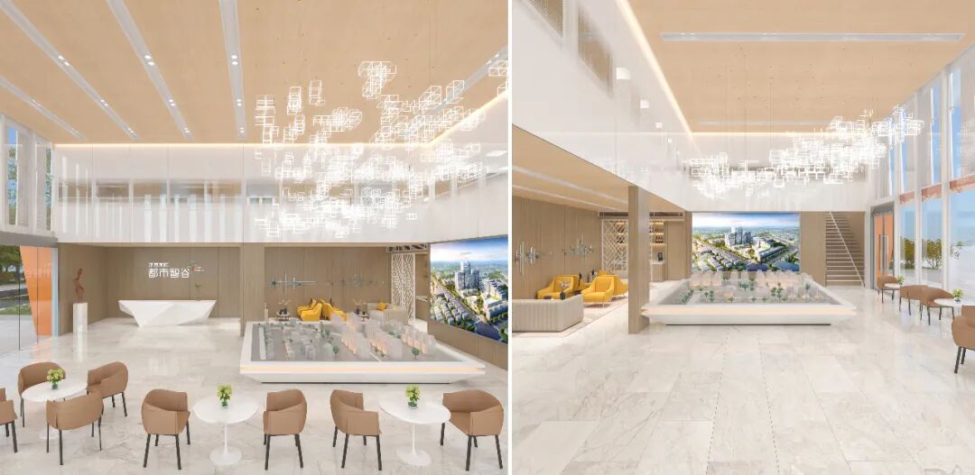 完工后的智谷售楼中心效果对比原效果图远超预期更具科技感、更具未来感以下是原东莞售楼中心效果图几乎100%还原了原方案↓ ↓ ↓