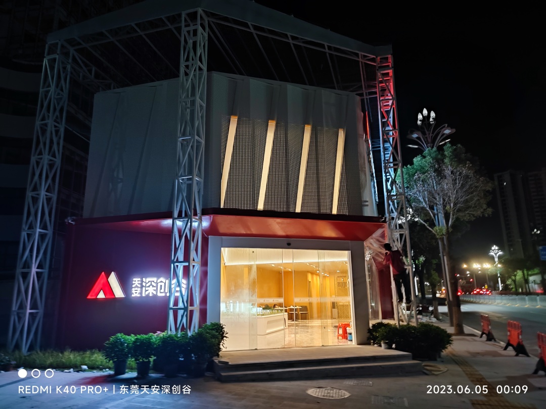 继东莞凤岗都市智谷二期临时售楼中心展厅项目、 深圳共联·都市智谷临时售楼中心展厅项目,东莞天安深创谷装配式招商中心项目是客户第三次合作的装配式临时售楼中心项目,扎实的品质,极快的施工效率,再一次赢得了开发商甲方的高度认可。